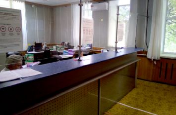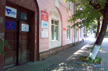 Вход в здание по ул. Ленина, рядом с ним есть информационные таблички включая нашу, поднявшись на 2 этаж нужно повернуть налево.