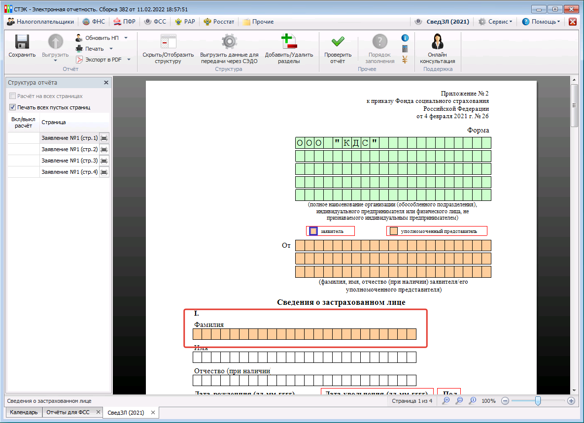 Инструкция по подготовке сведений по застрахованным лицам в Фонд социального страхования (ФСС) в СТЭК - Электронная отчётность.